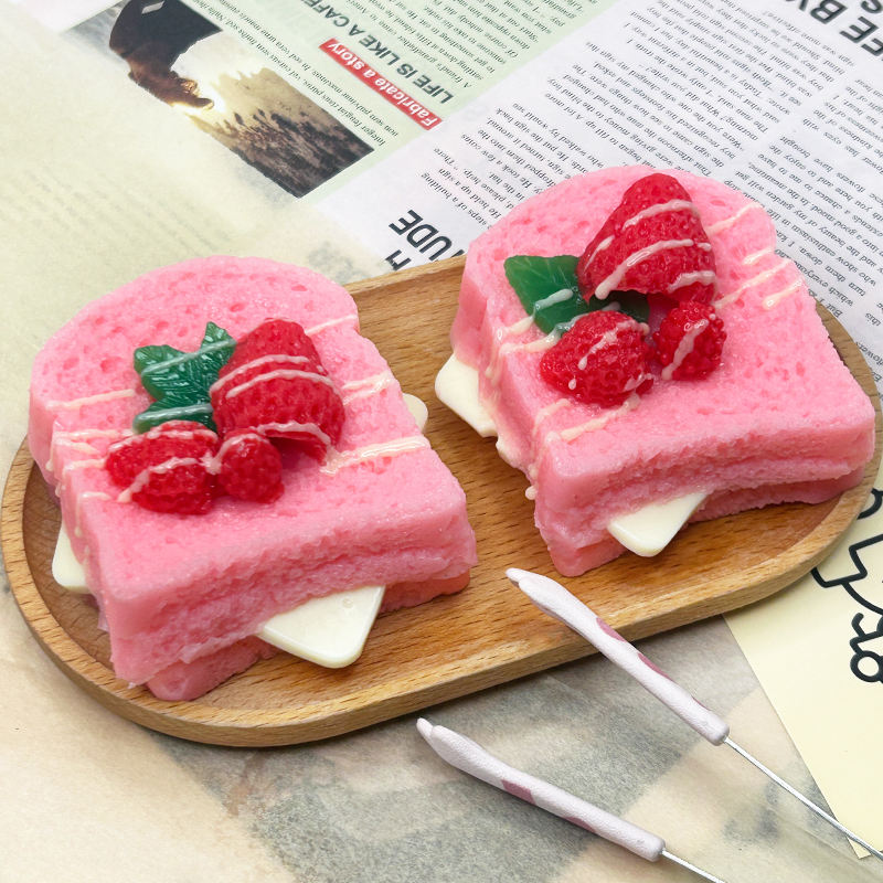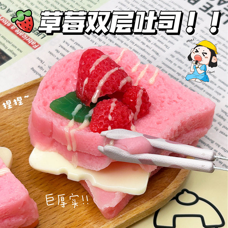 ขนมปังเค้กสควิชชี่รูปผลไม้สตรอว์เบอร์รี่สองชั้น ดีไซน์สวยงาม ทำจากพลาสติก รสชาเขียวและช็อกโกแลต