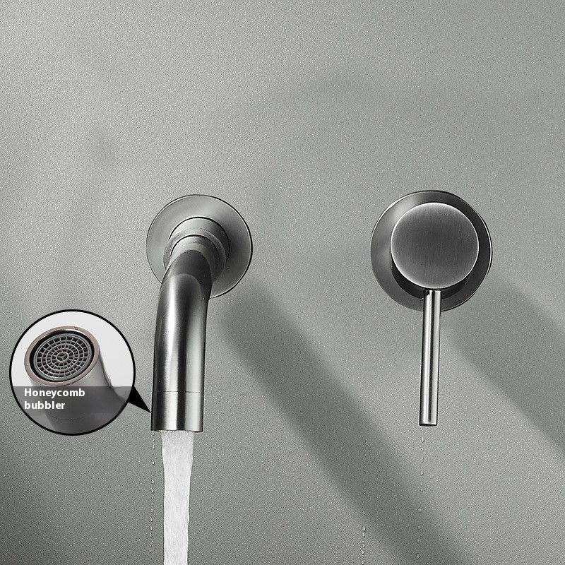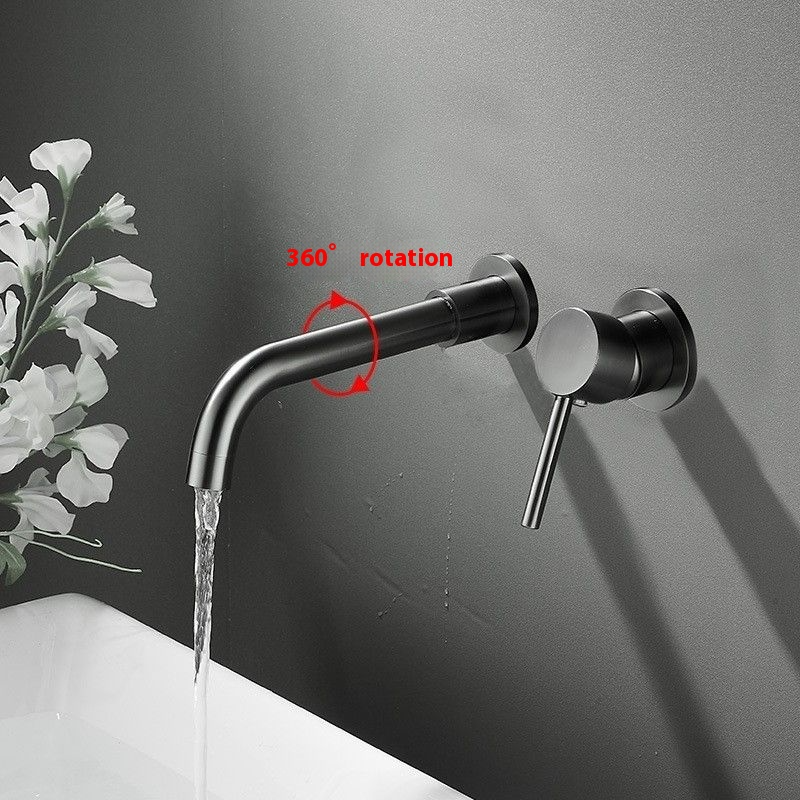 ก๊อกน้ำอ่างล้างหน้าแบบติดผนังเซรามิกเดี่ยวทรงสูง ดีไซน์ทันสมัย หัวก๊อกทองเหลืองแบบเรียบหรู หมุนได้ 360 องศา สำหรับห้องน้ำสไตล์โมเดิร์น