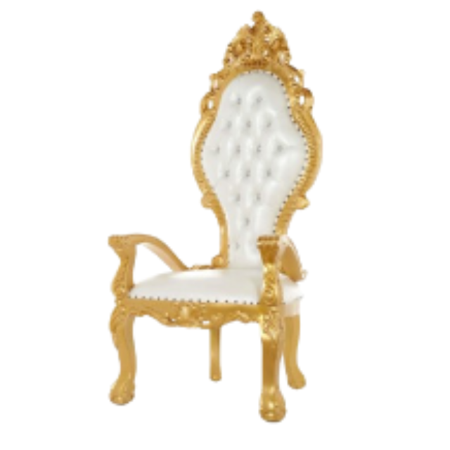 เก้าอี้บัลลังก์หลังสูงหรูหรากรอบสีขาวและสีทองสำหรับห้องนั่งเล่นและงานแต่งงานเฟอร์นิเจอร์ในบ้านราคาขายส่ง