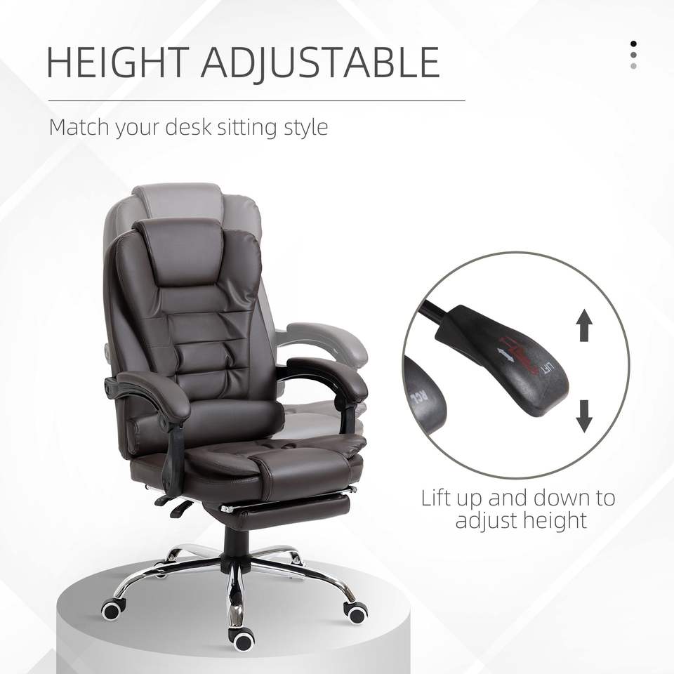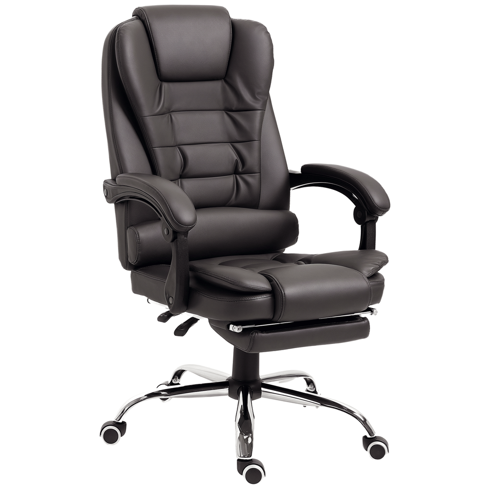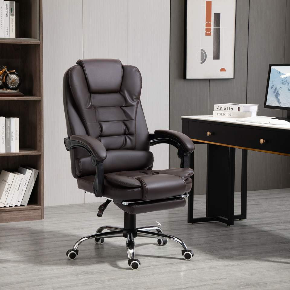 เก้าอี้สำนักงานผู้บริหารแบบเอนหลังสูง พร้อมที่พักเท้าและที่วางแขน สีกาแฟ เก้าอี้คอมพิวเตอร์