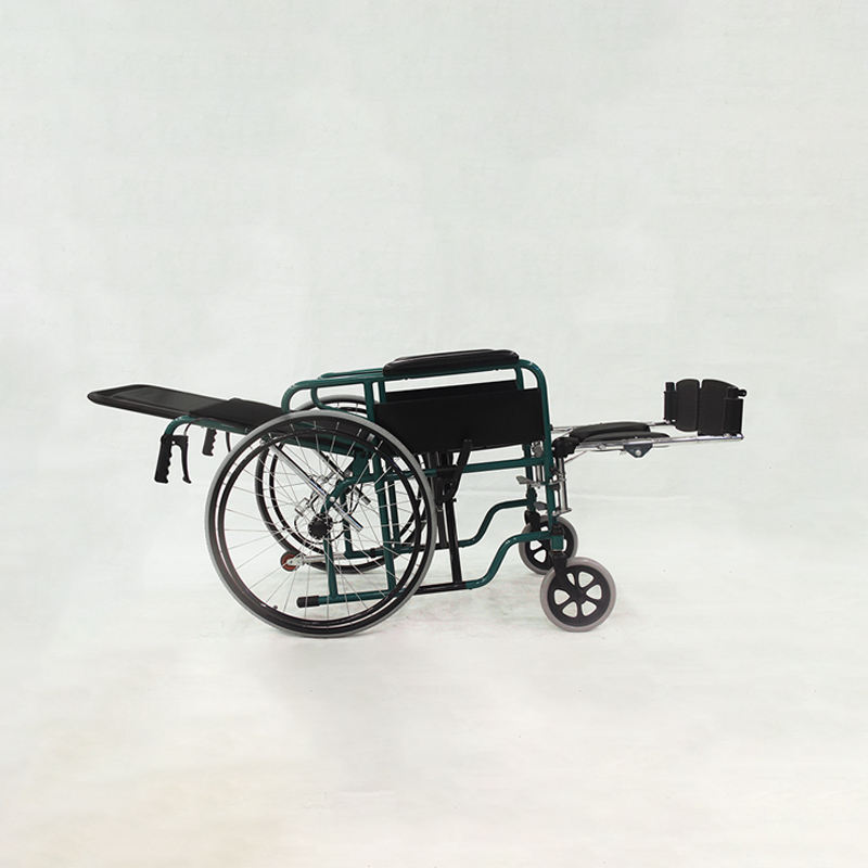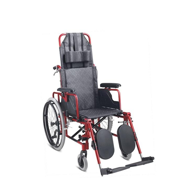 รถเข็นคนพิการแบบพับได้น้ำหนักเบาพนักพิงสูงปรับเอนนอนได้ที่วางเท้าที่ยกพนักพิงศีรษะที่ถอดออกได้