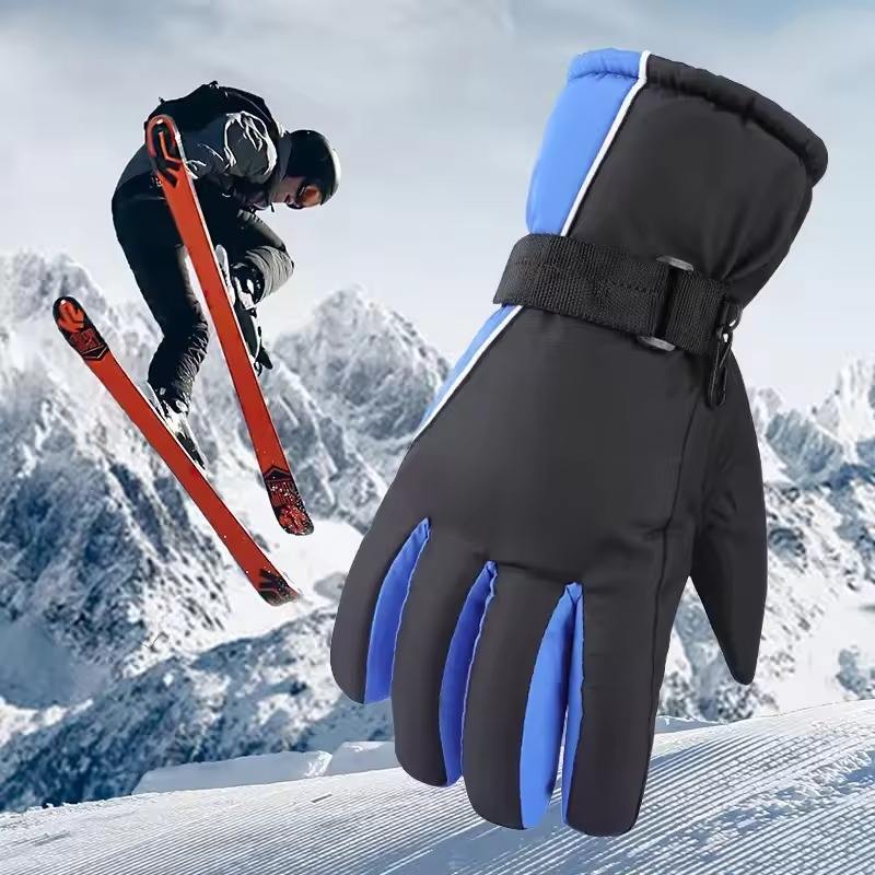 ถุงมือกันลมสำหรับฤดูหนาวของผู้ชายถุงมือสกีกันน้ำวัสดุหนังอบอุ่นสบาย