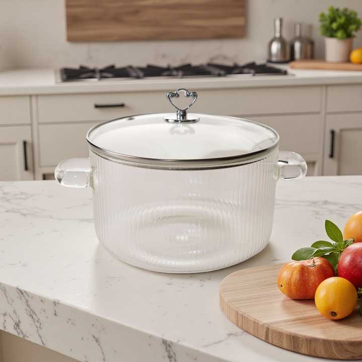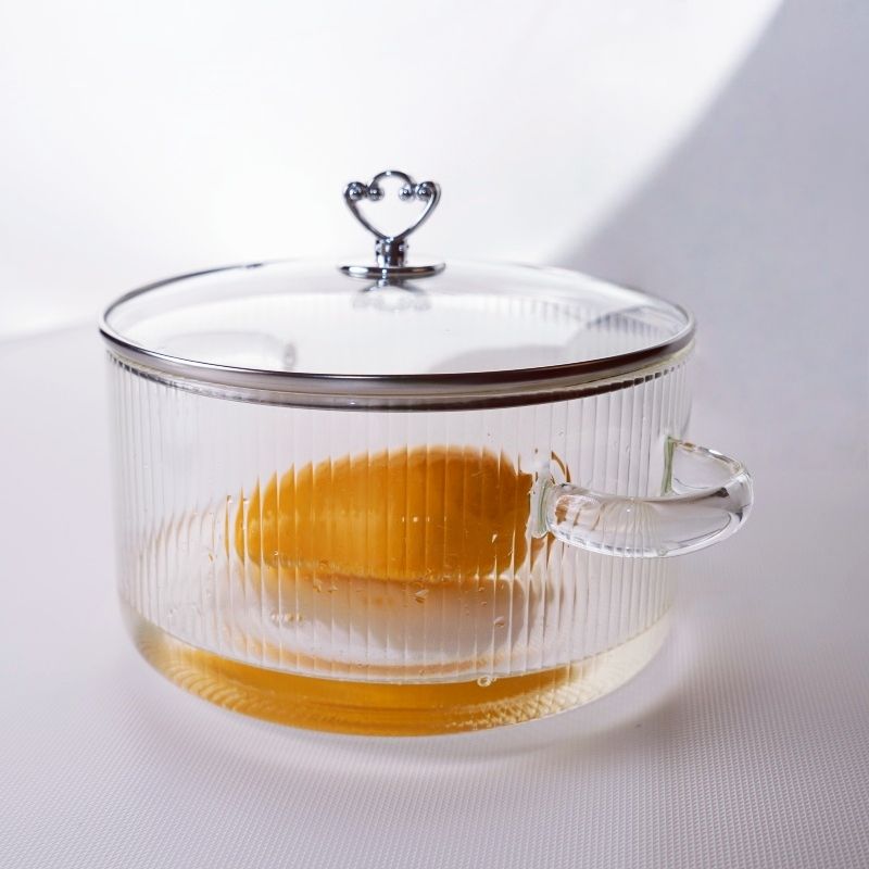 หม้อแก้วทนความร้อนทนความร้อนสูงพร้อมฝาปิดสำหรับใช้กับเตา