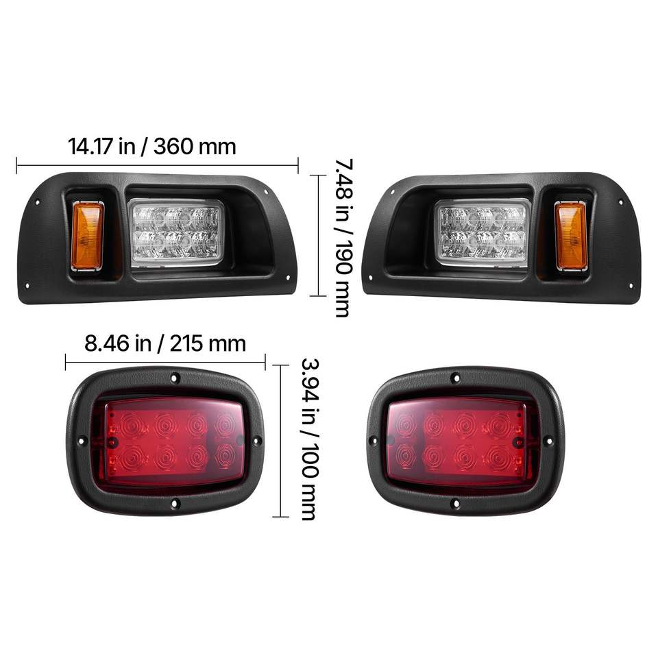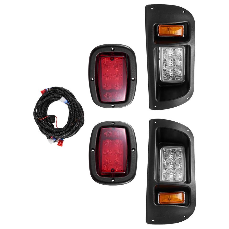 ชุดไฟหน้าและไฟท้าย LED 12 โวลต์ความสว่างสูงสำหรับรถกอล์ฟ พร้อมชุดสายไฟ สวิตช์ สายรัดซิป และตัวเรือน ABS