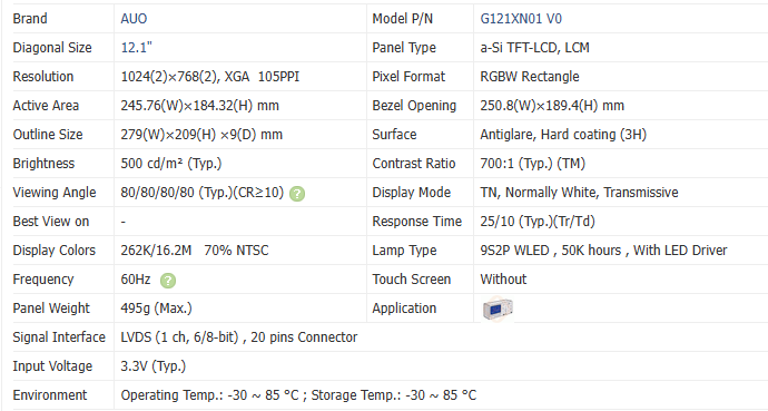 ขนาดหน้าจอ:12.1 inch
