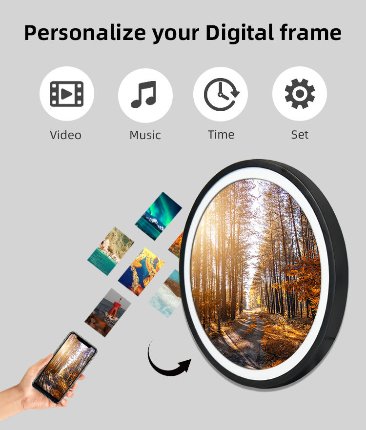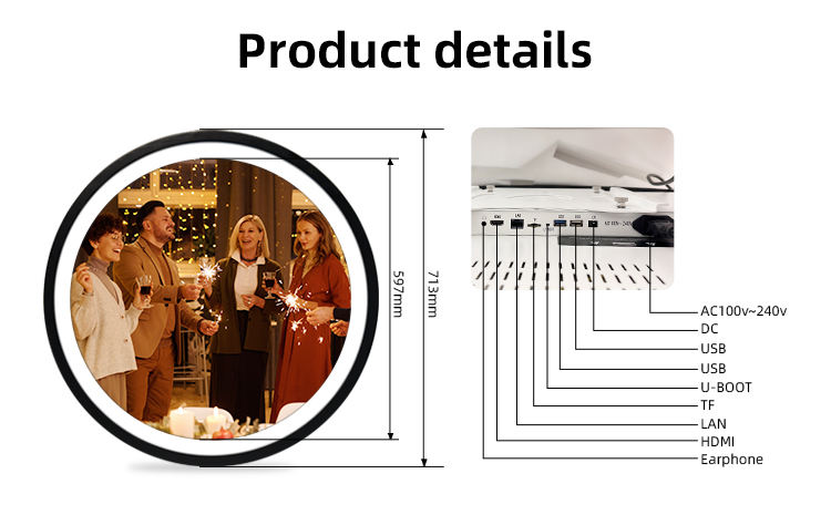 High Brightness 300cd Full View 23.6'' Round Digital Photo Frame Mobile Phone App Control Provide App for Art Exhibition