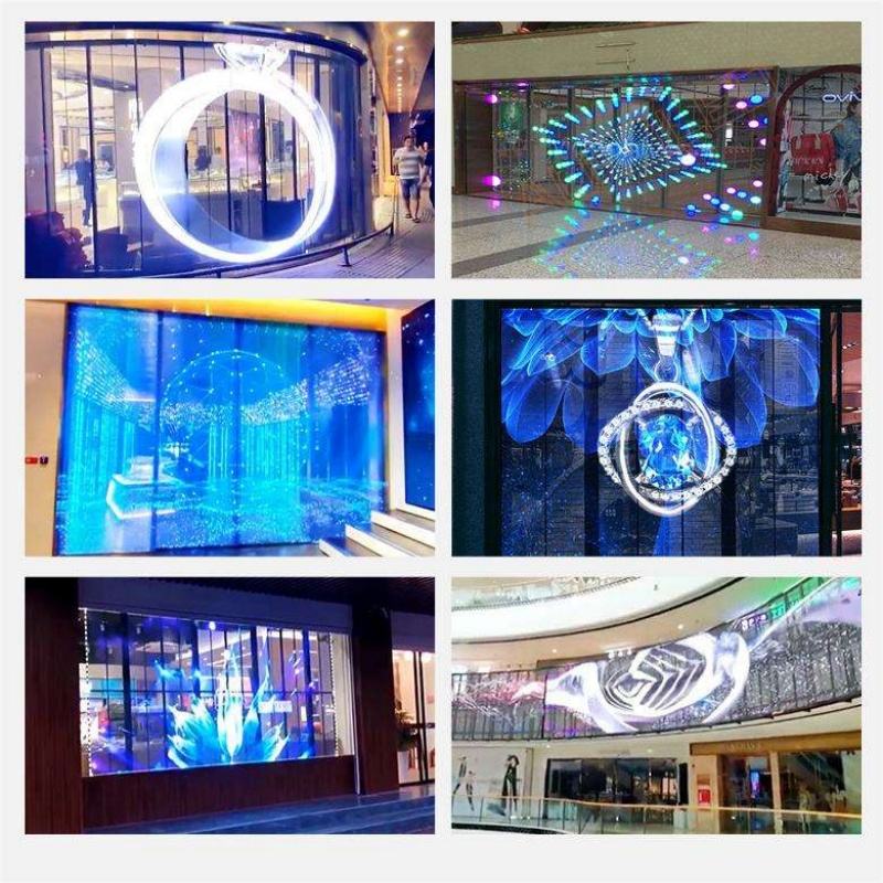 จอแสดงผล LED แบบโปร่งใสสีสันสดใสสำหรับภายในอาคาร ความสว่างสูง 9000cd/m ขนาดโมดูล 250x250 มม. วิดีโอวอลล์แบบฟิล์มกระจก รีเฟรชเรทสูง