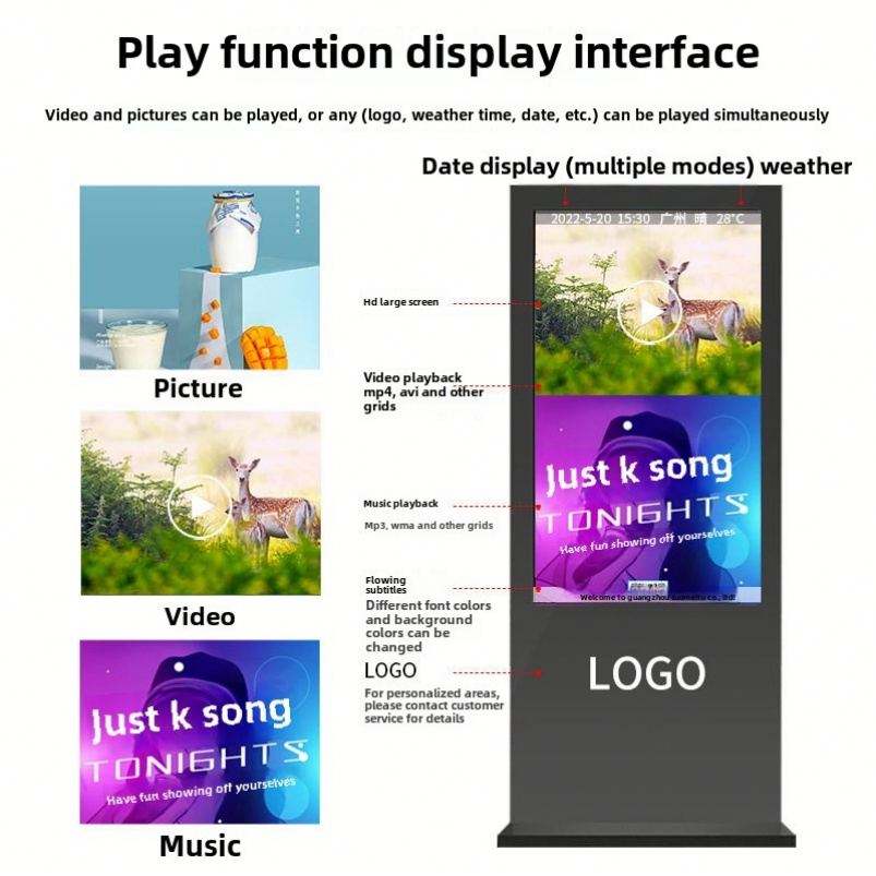 ป้ายดิจิตอลตั้งพื้นกันน้ำ IP65จอ LCD แนวตั้งให้ความสว่างสูงสำหรับกลางแจ้ง