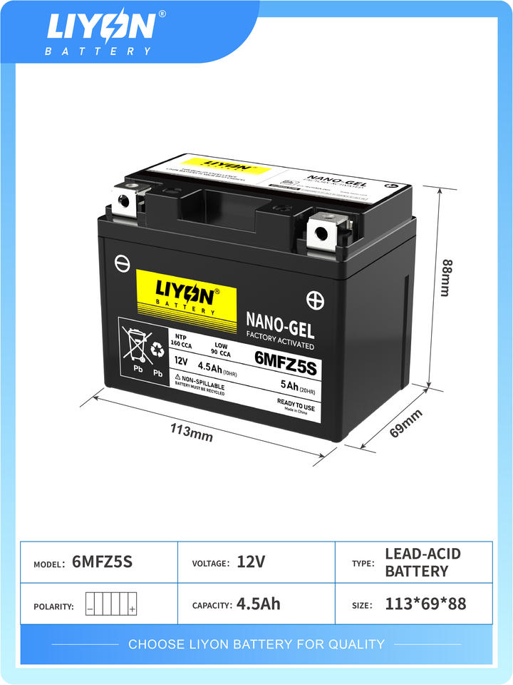 แบตเตอรี่มอเตอร์ไซค์เจล CCA สูง ราคาโรงงาน 6MFZ5S 12V5Ah อุปกรณ์ตกแต่งมอเตอร์ไซค์ อะไหล่มอเตอร์ไซค์ Repuestos De Moto จีน