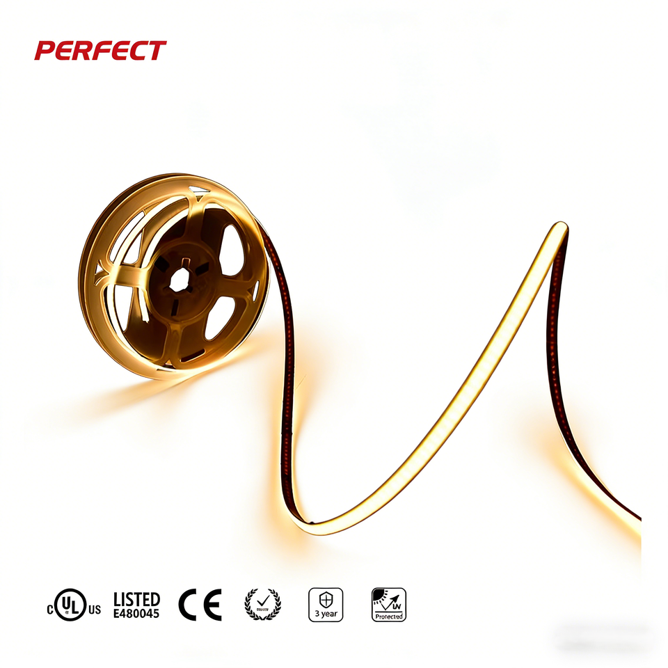 ไฟแถบ LED COB CRI สูง DC24V 384LED/เมตร 1000LM/เมตร แผงวงจรพิมพ์ 3/5 มม. 10W/เมตร ตัดได้ทุก 41.66 มม. 2700K-6500K ปรับความสว่างได้ ใช้ได้ทั้งในบ้านและเชิงพาณิชย์