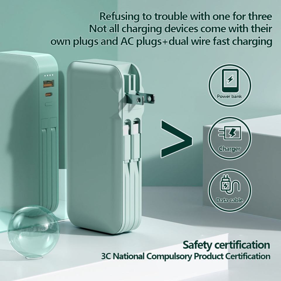 แบตสำรองพกพาความจุสูง 10000mAh ชาร์จเร็ว มินิ USB Li-Polymer ช่องเสียบ USB คู่ Type-C อะแดปเตอร์ติดผนังอเนกประสงค์สำหรับ