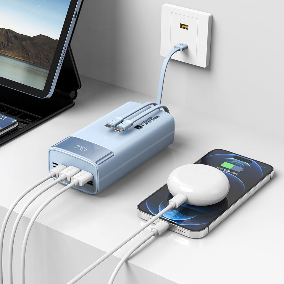 แบตเตอรี่สำรองแบบพกพาความจุสูง30000มิลลิแอมป์ชาร์จเจ็ดพอร์ตชาร์จ1 PD22.5W ได้ในตัวแท่นชาร์จ3ตัว