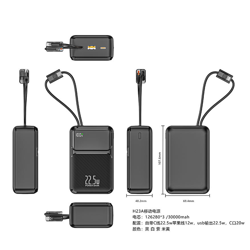 โมเดล:แบตเตอรี่สำรองความจุขนาดใหญ่ H23A 30000 mAh