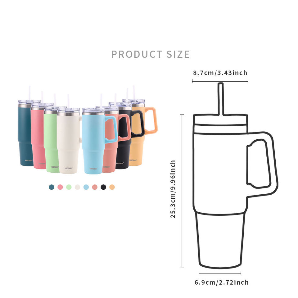 แก้วน้ำสแตนเลสสองชั้นขนาด40ออนซ์พร้อมที่จับหลอดดูดดีไซน์คลาสสิกสำหรับการตั้งแคมป์