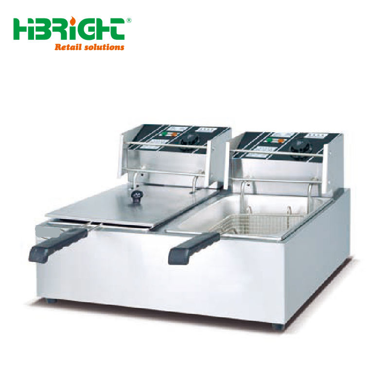 เครื่องทอดอาหารเชิงพาณิชย์ Highbright HBE แบบถังคู่ ความจุสูง ทำจากสแตนเลส ทนความร้อนสูง สำหรับครัวร้านอาหารฟาสต์ฟู้ด