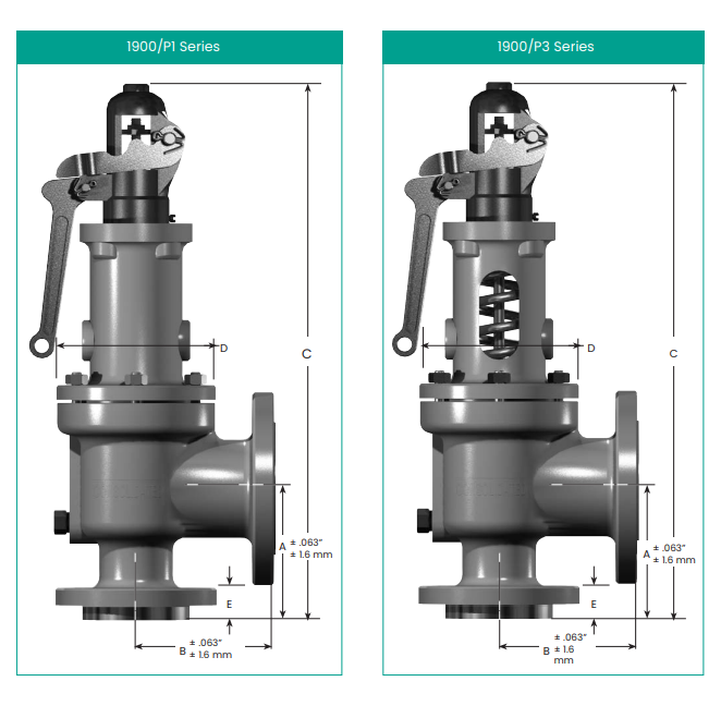 วาล์วนิรภัยแบบสปริงโหลดชนิดรวมความจุสูง 1900/P ได้รับการรับรองมาตรฐาน ASME พร้อมข้อต่อแบบหน้าแปลน