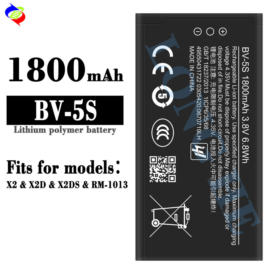 BV-5S แบตเตอรี่ลิเธียมไอออนสำหรับโทรศัพท์ Nokia X2 X2D RM-1013 X2DS