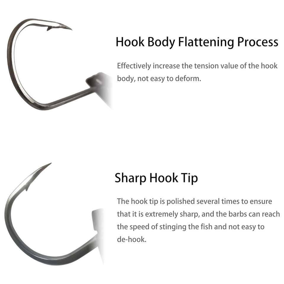 ตะขอตกปลาวงกลมสแตนเลสคาร์บอนสูงตะขอเบ็ดตกปลารูปปลาหมึกคมพร้อมนิกเกิลสีดำสำหรับการตกปลาน้ำเค็ม CE