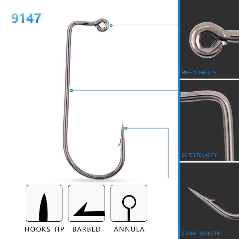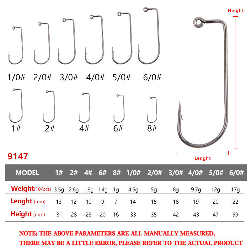 เบ็ดตกปลาเหล็กกล้าคาร์บอนสูงแบบมีเงี่ยง สำหรับตกปลาแบส ตกปลาทะเล ตกปลาในน้ำเค็ม ตกปลาหิน ตกปลาด้วยเหยื่อหนอน ขนาด 1 ถึง 10