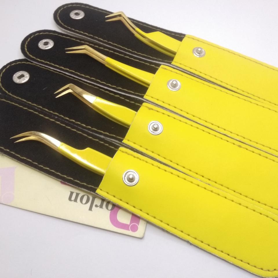 แหนบต่อขนตาสีเหลืองปลายสีทองสำหรับต่อขนตาโลโก้แบบกำหนดเอง