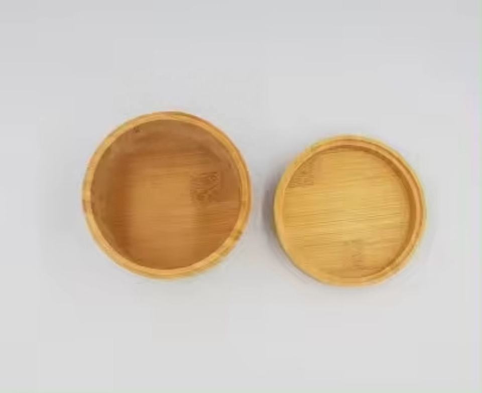 กล่องไม้ไผ่ทรงกลมอเนกประสงค์หรูหราระดับสูงสำหรับกาแฟชาซีเรียลอาหารของขวัญไม้ที่ซับซ้อน