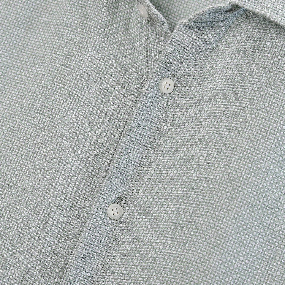 เสื้อเชิ้ตแขนยาวลำลองสีเขียวมอสสำหรับผู้ชายระดับไฮคลาสผ้าลินินผสมผ้าฝ้ายจำนวนมาก