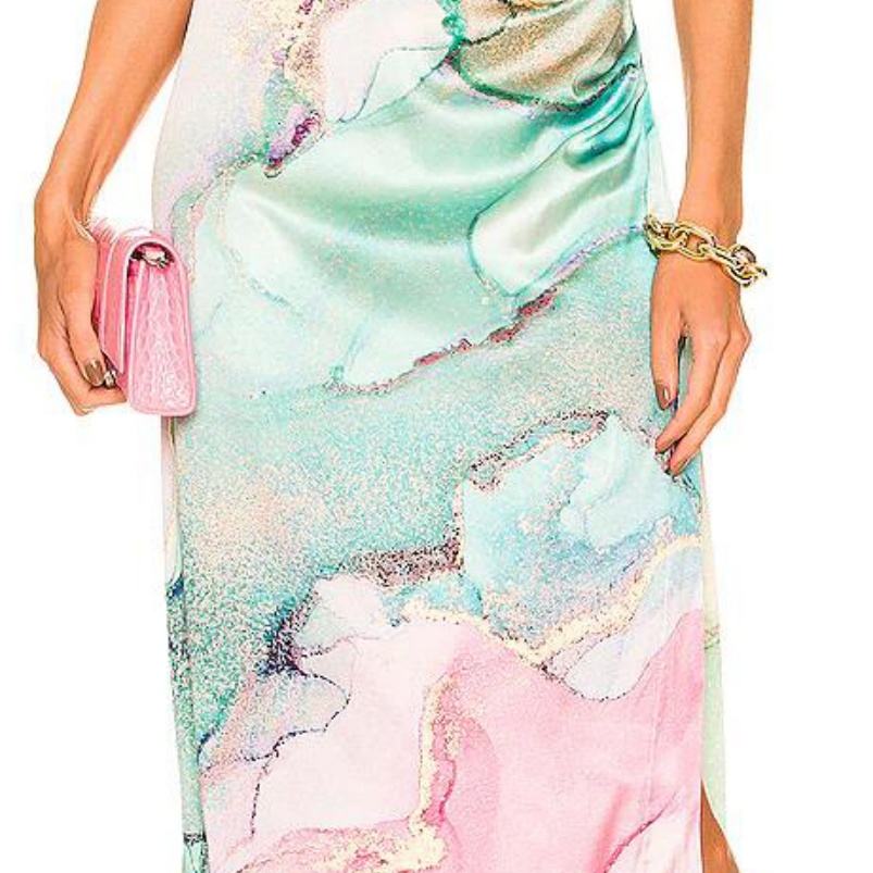 ชุดกระโปรงยาวพิมพ์ลายเหงื่อทรงสลิมสำหรับคนอ้วนแต่งเดรสสายเดี่ยวเซ็กซี่คอแบบไม่สม่ำเสมอมีรอยผ่าสูง