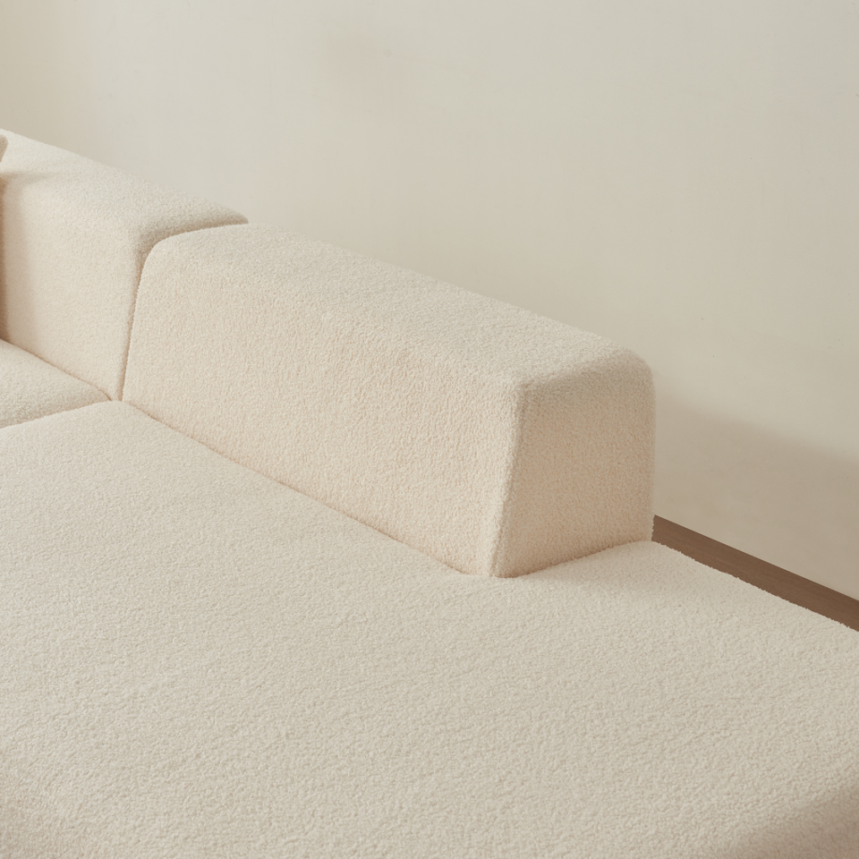 โซฟาขนแกะสี่เหลี่ยมสีเบจหลายที่นั่งแบบบีบอัดสูงห้องนั่งเล่นทันสมัยหรูหราร่วมสมัยเข้ามุมชุดโซฟาสำหรับอพาร์ทเมนต์