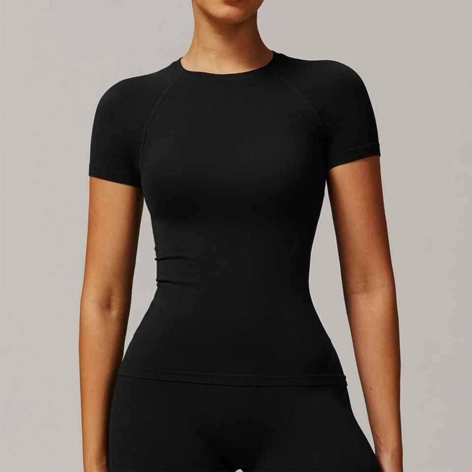 เสื้อยืดรัดรูปแห้งเร็วสำหรับผู้หญิงเสื้อยืดออกกำลังกายวิ่งโยคะระบายอากาศได้น้ำหนักเบา