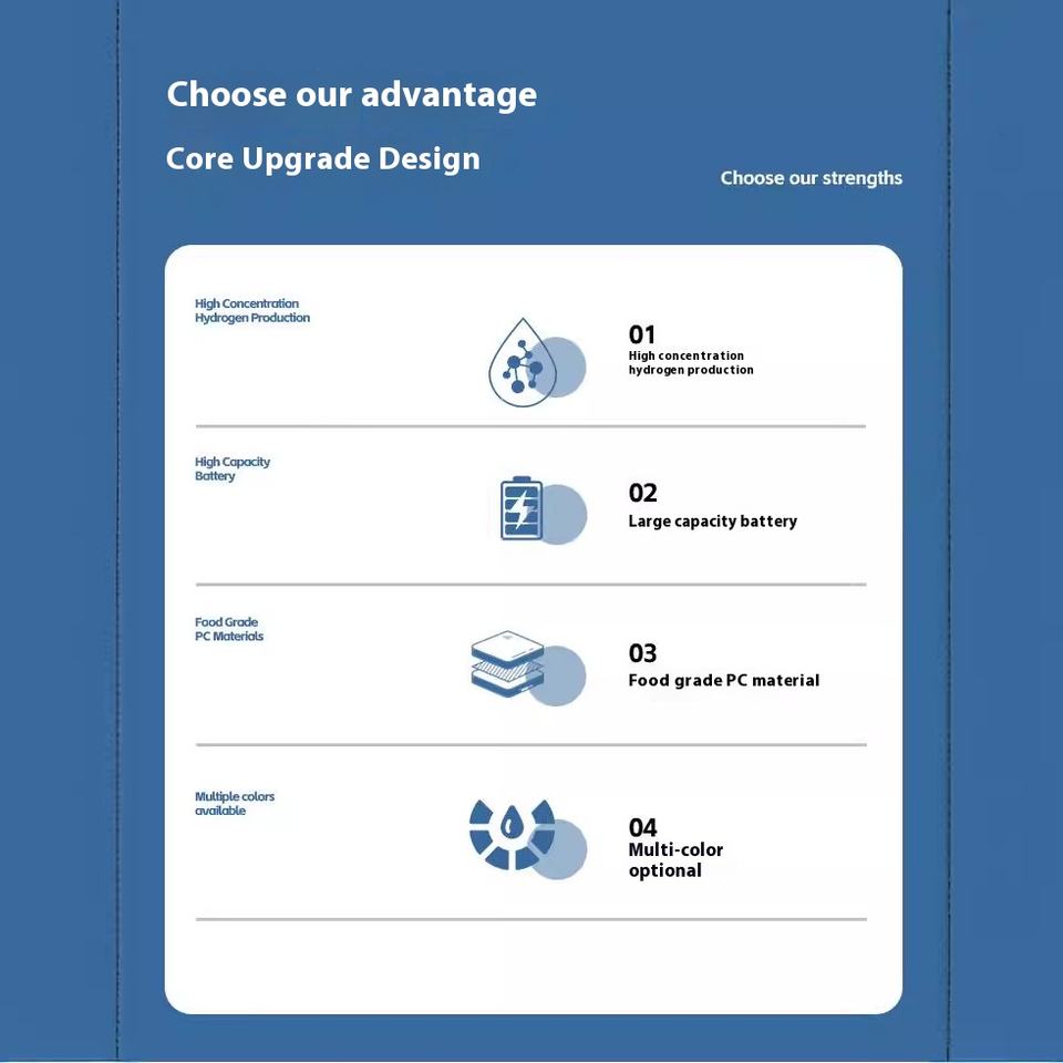 ถ้วยน้ำไฮโดรเจนอัจฉริยะแบบสามในหนึ่งเดียวที่เข้มข้นสูงแบบพกพาแบบ SPE Electrolysis สำหรับธุรกิจที่มีระดับ
