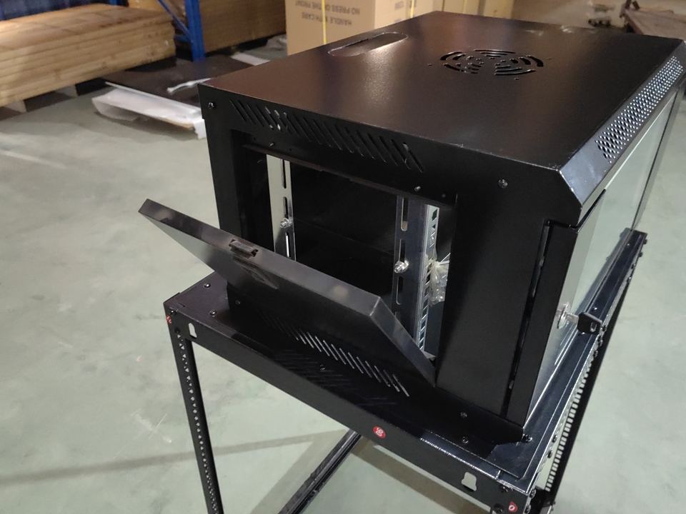 ชั้นวางเซิร์ฟเวอร์ติดผนังสีดำประสิทธิภาพสูงชั้นวางเซิร์ฟเวอร์แบบติดผนังขนาด19นิ้วชั้นวางเซิร์ฟเวอร์แบบติดผนัง
