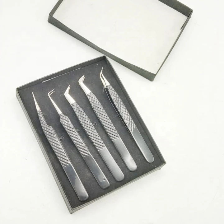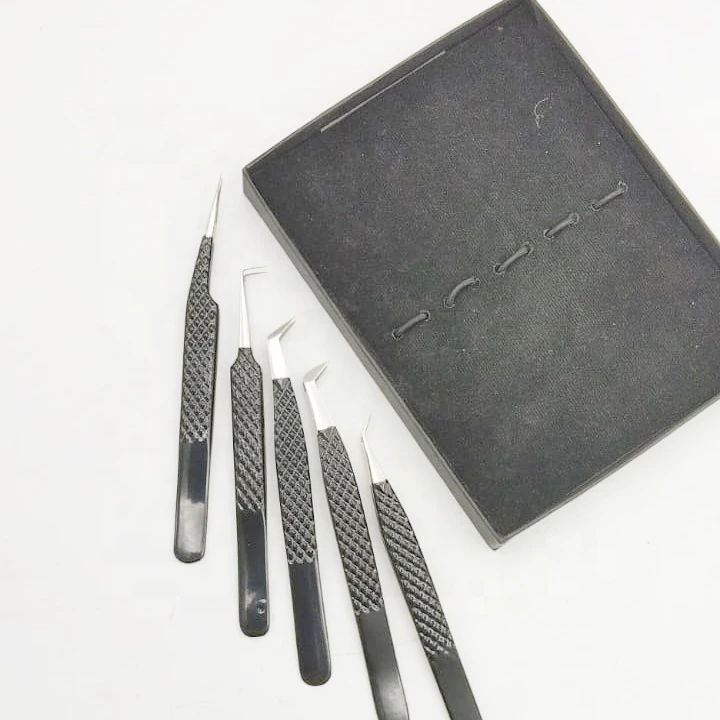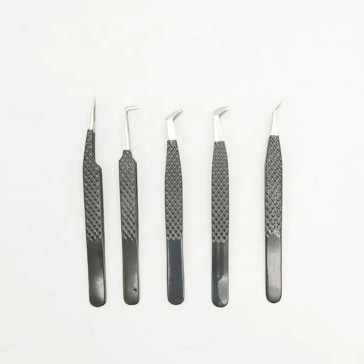 ชุดแหนบต่อขนตาแบบเฉียง ดีไซน์พิเศษ ผลิตจากเหล็กกล้าที่ยั่งยืน พร้อมเคลือบสีดำด้วยเทคนิคพาวเดอร์โค้ท อุปกรณ์เสริมสำหรับต่อขนตา