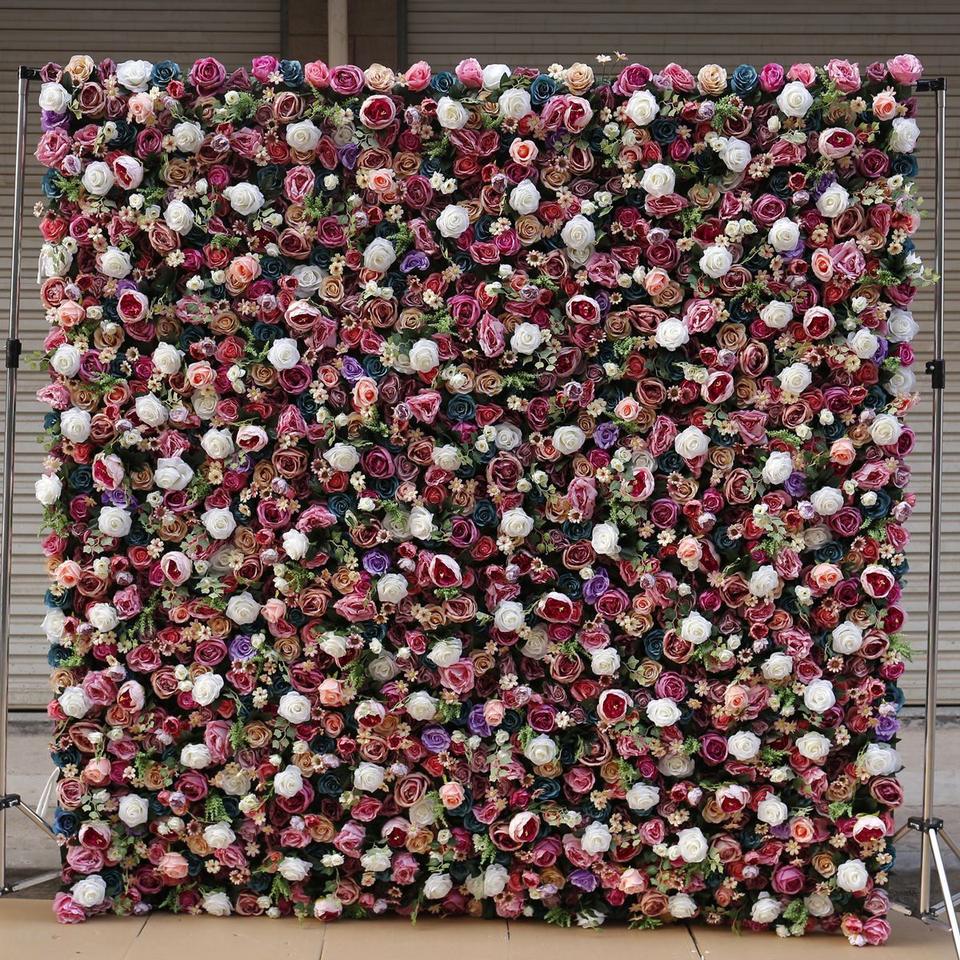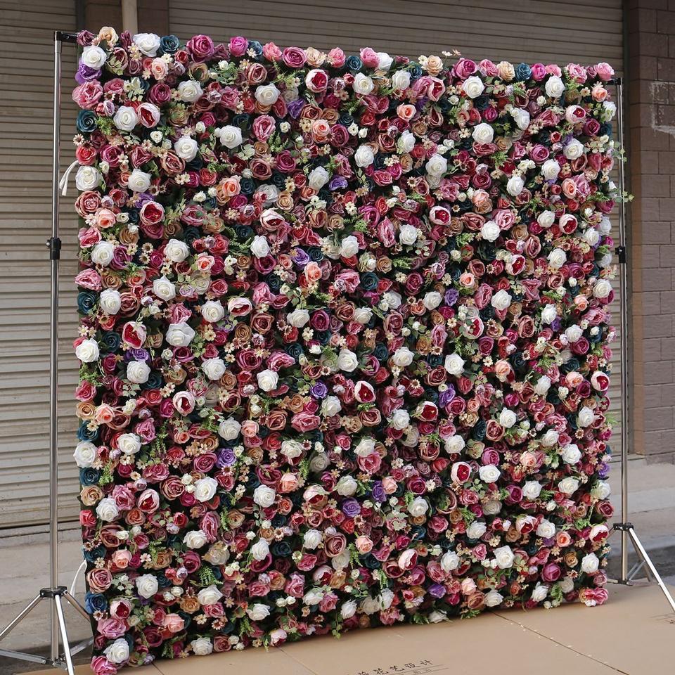 ฉากหลังถ่ายรูปงานแต่งงานแบบหลายชั้น ดีไซน์ดอกไม้ประดิษฐ์ 3 มิติ ความละเอียดสูง