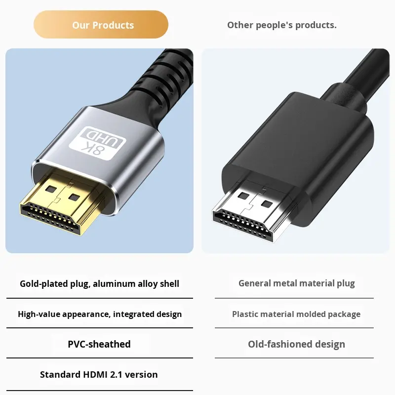 ชุดสาย HDMI 8K ความละเอียดสูงแจ็กเก็ตพีวีซีแบบ2.1ยาว10เมตรสำหรับเชื่อมต่อคอมพิวเตอร์ทีวี