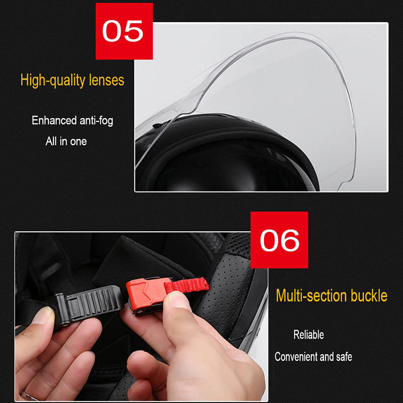 หมวกกันน็อคมอเตอร์ไซค์แบบเปิดหน้า 3/4 วัสดุ ABS พร้อมแผ่นบังแดดความคมชัดสูง เลนส์คู่ สำหรับรถจักรยานยนต์ทั่วไป