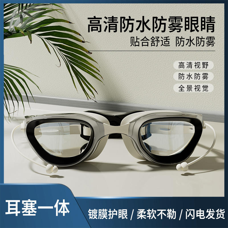 แว่นตาว่ายน้ำกันน้ำความละเอียดสูงซิลิโคนป้องกันหมอกแว่นตาว่ายน้ำอเนกประสงค์สำหรับการแข่งขันว่ายน้ำ