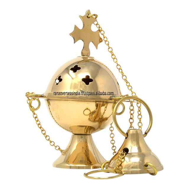 กระถางธูปทองเหลืองพร้อมห่วงโซ่แขวนที่หรูหราเป็นที่ต้องการสูง