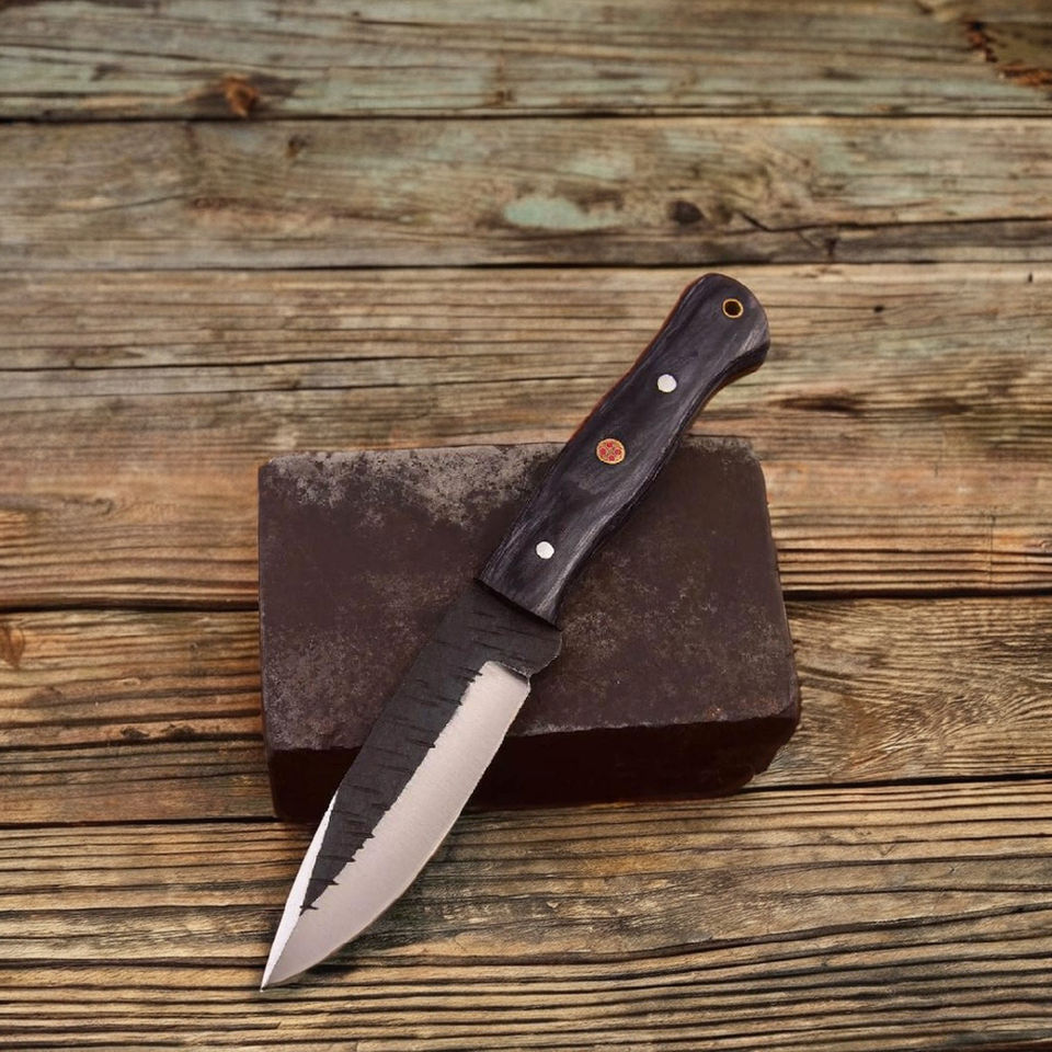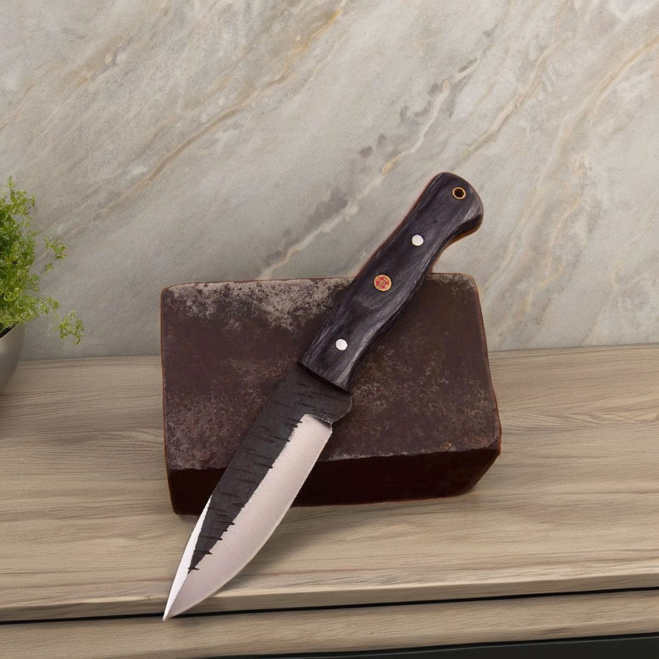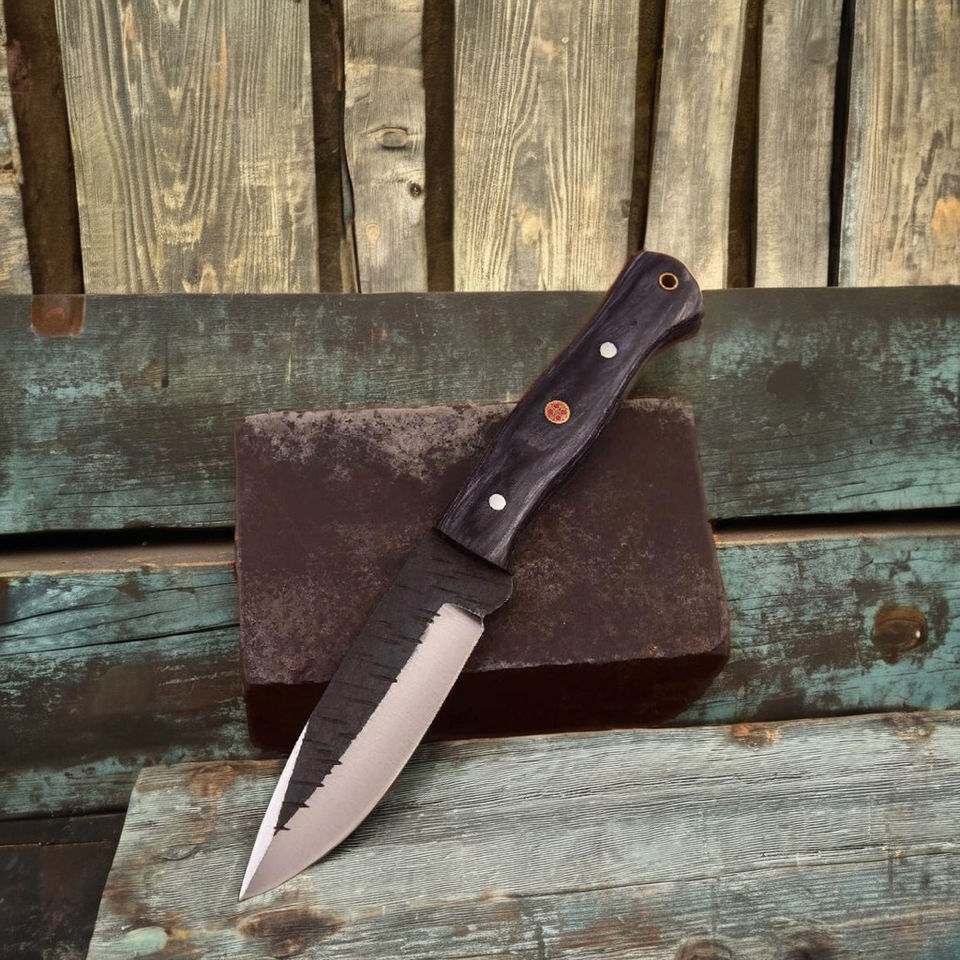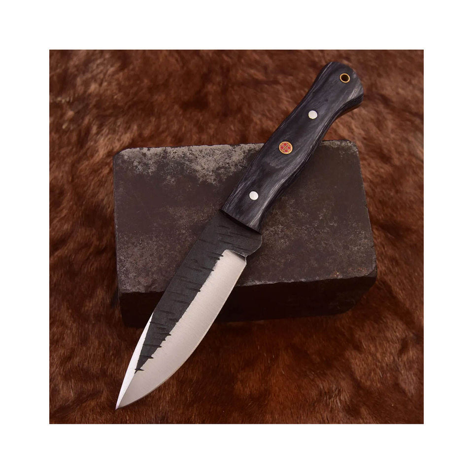 มีดฟอร์จสั่งทำพิเศษ ความต้องการสูง พร้อมใบมีดลายดำและด้ามจับแบบหมุดสามตัว | เกรดคอลเลคเตอร์เกรดพร้อมคุณภาพระดับ OEM ในราคาประหยัด