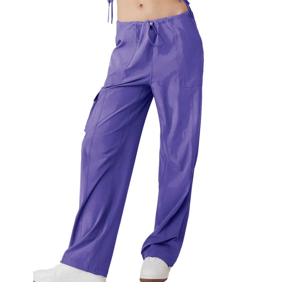 กางเกงคาร์โก้เอวสูงปรับได้สำหรับผู้หญิงมีกระเป๋าหลายช่องความต้องการสูง