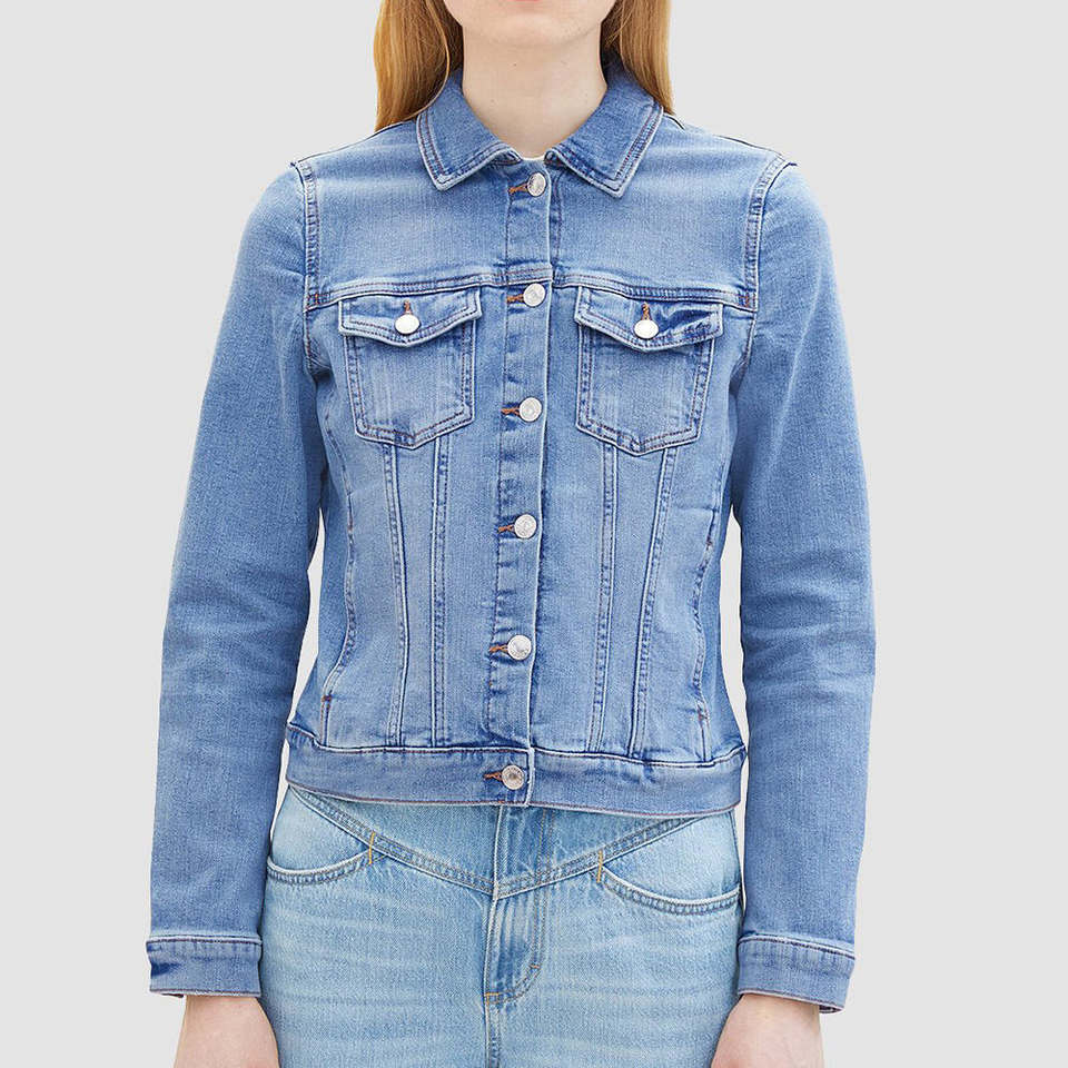 เสื้อแจ็คเก็ตผ้ายีนส์ Blau สำหรับผู้หญิงกระเป๋าคาดอกผ้าฝ้ายเป็นมิตรกับสิ่งแวดล้อมสำหรับทุกฤดูกาลมีความต้องการสูง