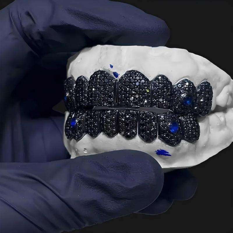 กริลล์ซ์เงินแท้ 925 ประดับมอสซาไนต์สั่งทำพิเศษ งานละเอียด ระยิบระยับ สไตล์ฮิปฮอป ขายส่ง แฟชั่นสุดฮิต