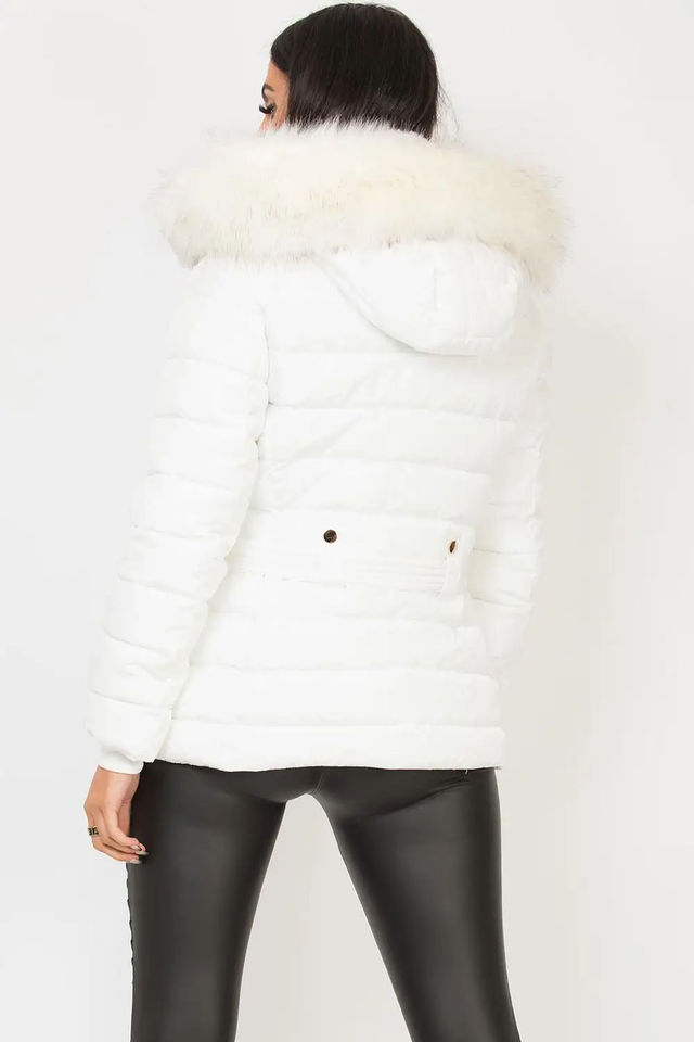 เสื้อแจ็กเก็ตขนเป็ดสีขาวแบบสั่งทำมีฮู้ดขนเทียมมีซิปเต็มรูปแบบและเสื้อแจ็คเก็ตขนเป็ดสำหรับผู้หญิงสำหรับฤดูหนาว