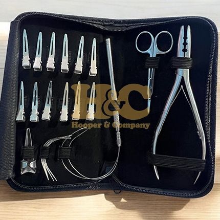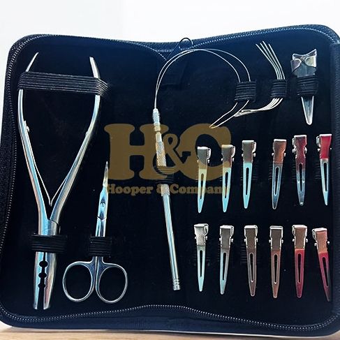 อุปกรณ์ทำผมมืออาชีพสำหรับขาย ชุดอุปกรณ์ต่อผมสแตนเลสสตีล สีเงิน พร้อมโลโก้ รับพิมพ์ลาย กรรไกรแบบสั่งทำพิเศษ เทปแบบสั่งทำพิเศษ