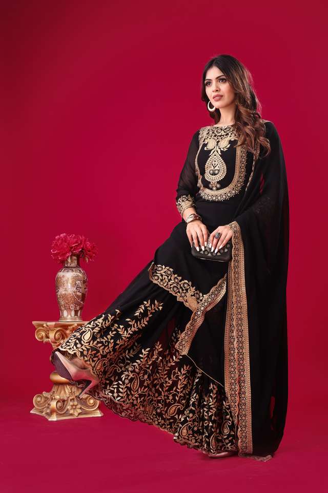 ชุดสูทชาราราสำหรับสตรีจากปากีสถานที่เป็นที่ต้องการสูงผ้าจอร์เจียเทียมบานสำหรับใส่ไปงานปาร์ตี้