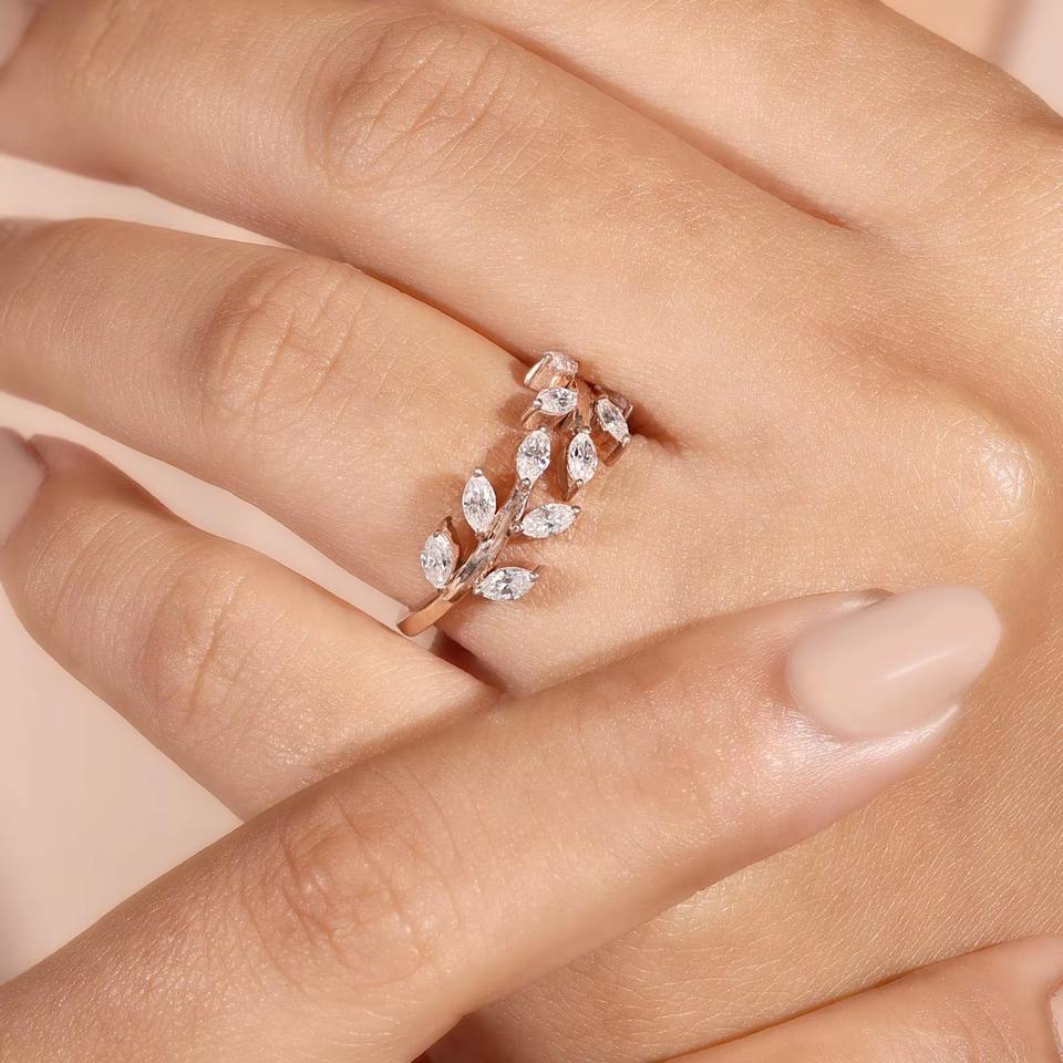 แหวนเพชรทรงใบไม้ยอดนิยม สีโรสโกลด์ สำหรับผู้หญิง แหวนแต่งงาน แหวนหมั้น ทรงมาร์คีส์ สไตล์ธรรมชาติ เครื่องประดับแฟชั่น