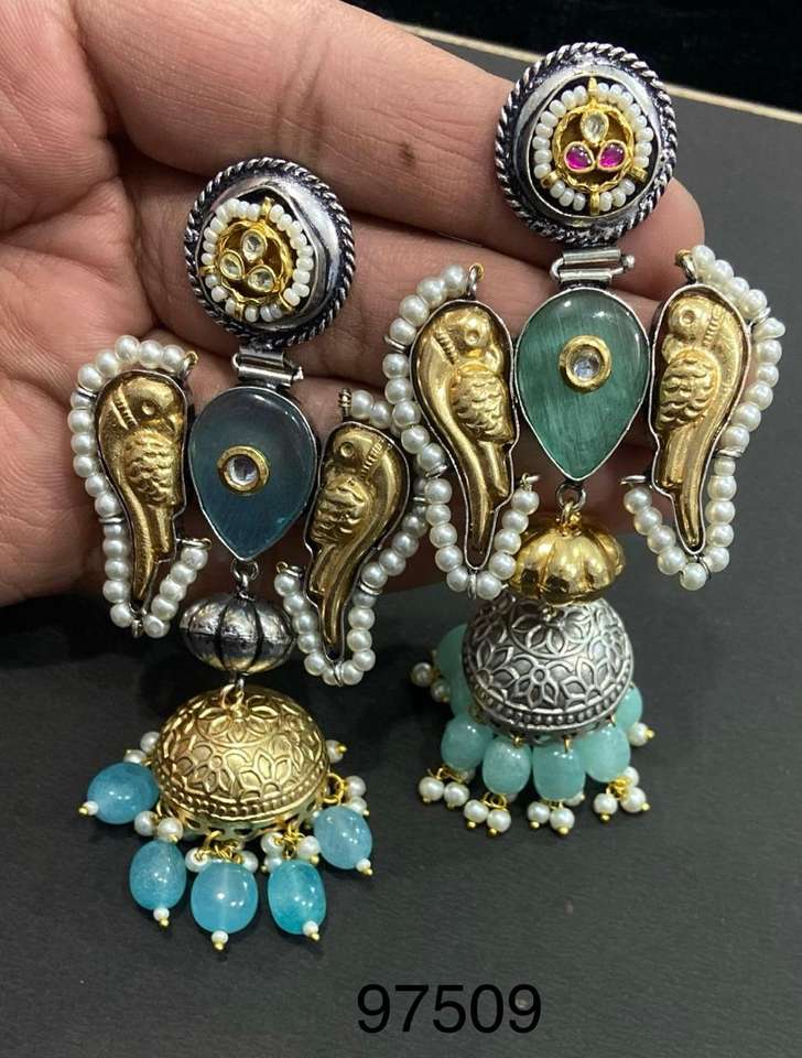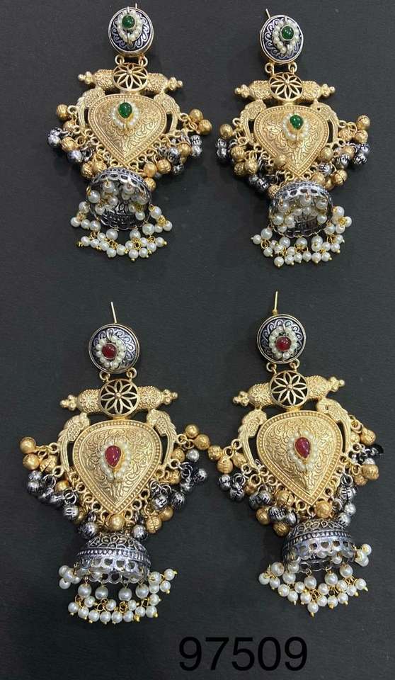 Navaratri ทำด้วยมือแบบคลาสสิกออกซิไดซ์ต่างหูตะขอสังเคราะห์แบบพิเศษเยอรมันโบราณสีเงิน