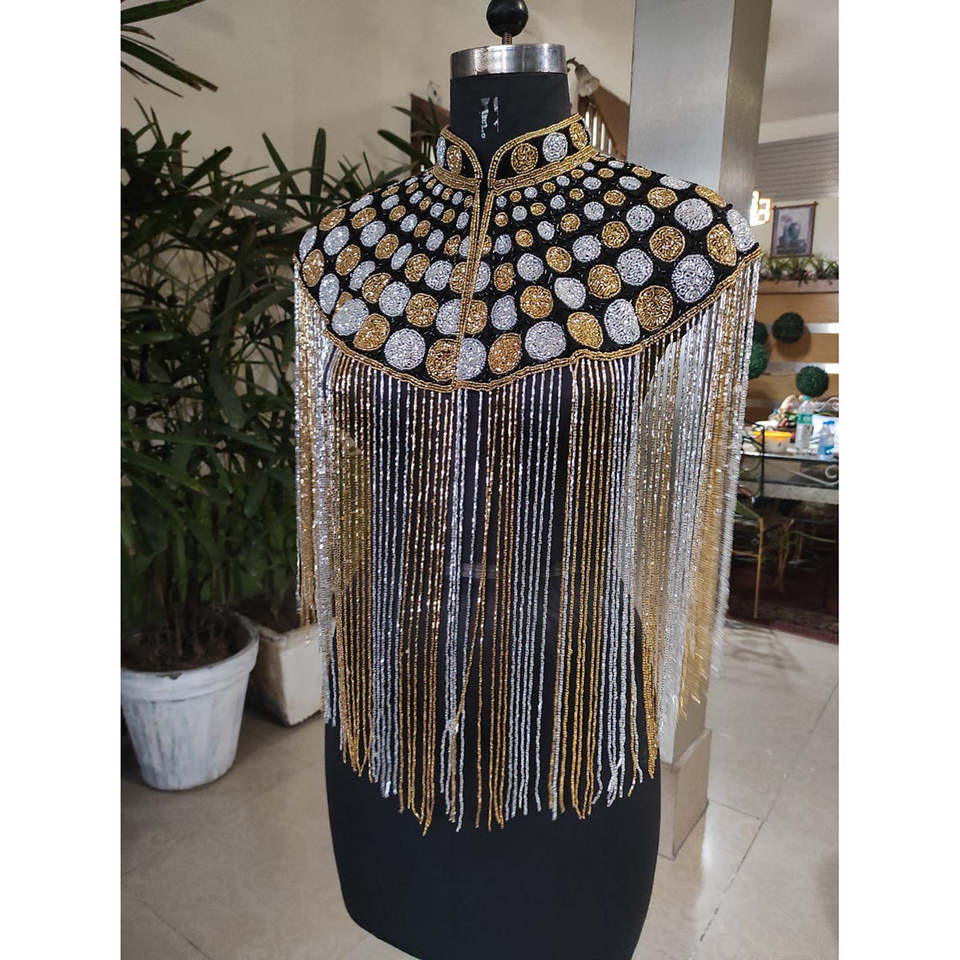 ผ้าคลุมไหล่ประดับลูกปัดทองคำและเงินสุดหรู งานฝีมือประณีต สำหรับผู้หญิง ผลิตโดยผู้ผลิตเสื้อผ้าแฟชั่นชั้นสูง มีความต้องการสูง