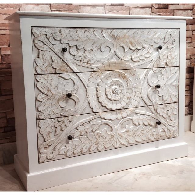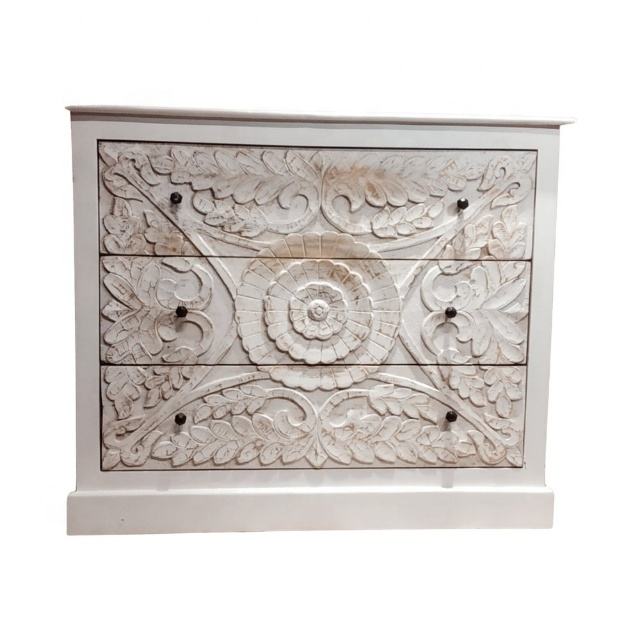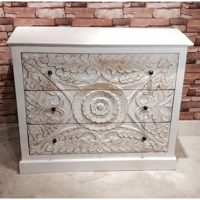 ตู้ไม้มะม่วงสีขาวคอนโซลไม้แกะสลักทำด้วยมือสำหรับห้องนั่งเล่นทางเข้าของตกแต่ง
