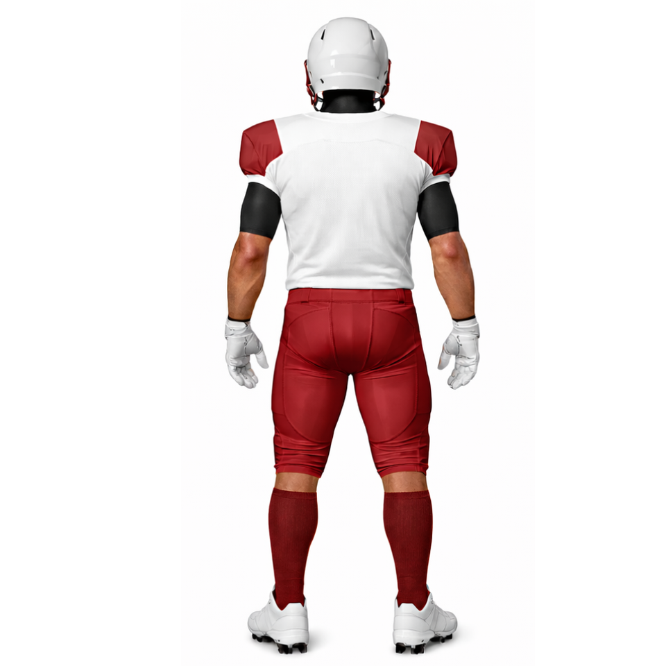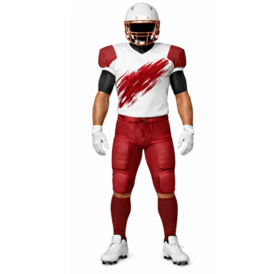 ชุดยูนิฟอร์มอเมริกันฟุตบอลสีขาวมารูนแบบซับลิเมชั่น พร้อมเสื้อแขนยาวแบบสลิมและกางเกงบุฟองน้ำ ขายดีมาก