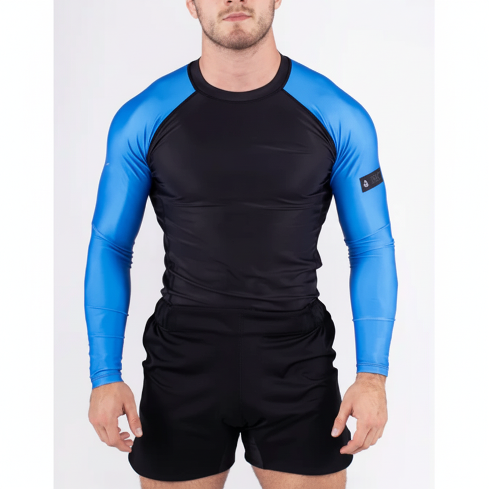 ชุดป้องกันผดผื่นสำหรับผู้ชายคอกลมแขนยาวแบบเต็มตัวผ้าโพลีเอสเตอร์ผ้าสแปนเด็กซ์